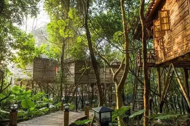 14:00办理入住树上围屋/艺廊驿舍/弥宫/百姓庄园/组合树屋了解树屋的构造,体验原始人类的居住文化。