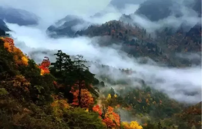 行至山脚,抬头仰望,瓦屋山以拔地通天之势高耸入云,一缕缕白雾好似一张轻纱在山间轻舞,肆意流转,苍翠欲滴的山林、花草在烟雾缭绕中若隐若现,好生迷人!常听闻瓦屋山一山容四季,“春赏杜鹃,夏观飞瀑,秋看红叶,冬恋冰雪”, 九月过半,暑气退,秋风起,瓦屋山也在悄无声息的变化着。盛夏的那抹象征着旺盛生命力的翠绿色还依然占据着山林的主色调,但零零点点的微红色已向人们宣告秋天正在悄悄来临,它们点缀在郁郁葱葱的绿涛之中,交相辉映,惊艳不已,不禁让人幻想深秋之时漫山彩林染红天际的奇景。