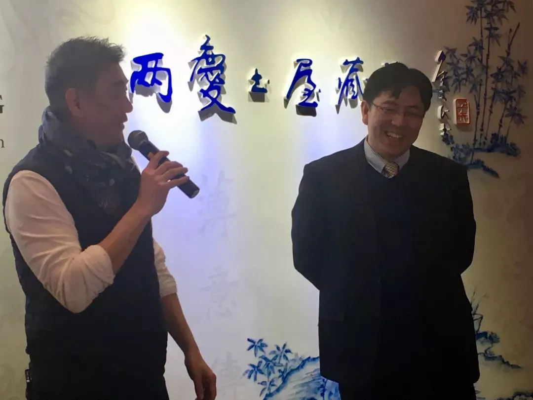 北京中汉联袂两庆书屋举办的“窑火丹青——两庆书屋藏瓷”于北京瑰丽酒店开幕,众多收藏家、鉴赏家齐聚展览现场,其中包括:两庆书屋主人的父亲、知名佛教艺术专家、学者金申,知名古陶瓷鉴赏家翟健民、知名收藏家冯玮瑜、知名鉴赏家钱伟鹏、佳趣雅集执行理事张志、全国工商联古陶瓷研究会会长李文年等。