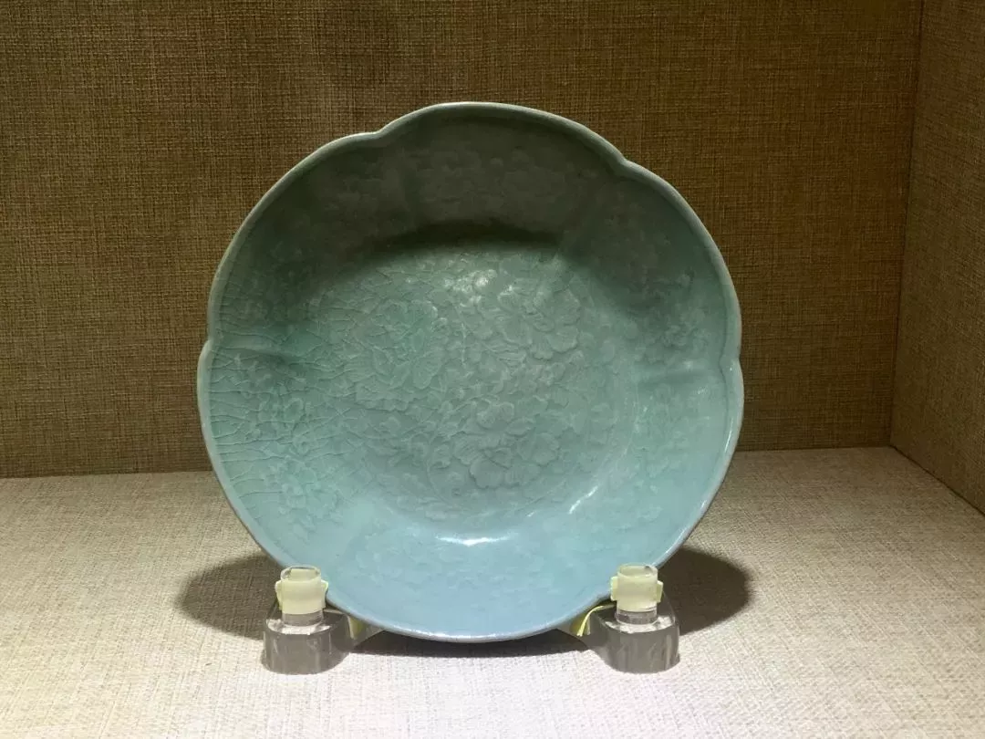 青瓷印花芙蓉纹棱口盘