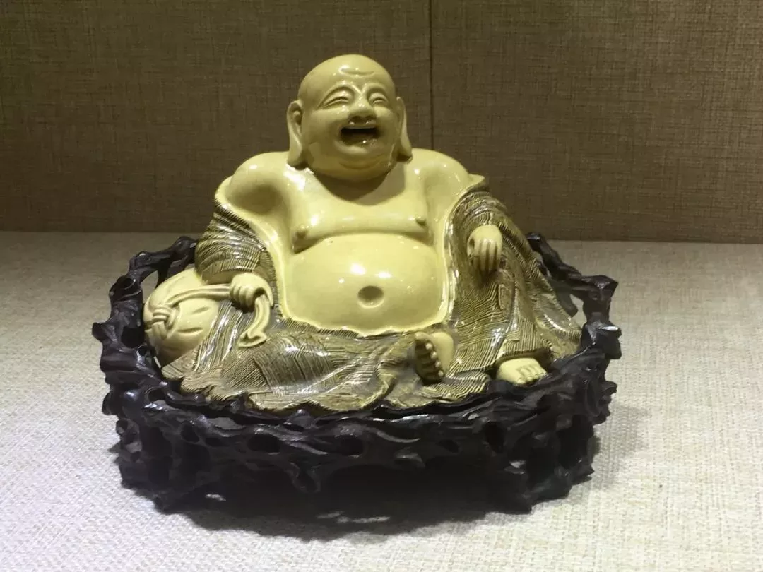 米黄釉绞泥米勒坐像