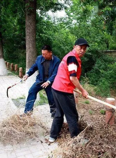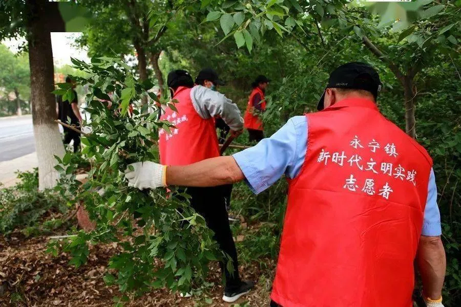 在利民街村东北角,志愿服务队的队旗迎风招展。队员们拿着镰刀、铁锹等工具,分散在这片杂草丛生的区域里,割草的割草,装运的装运,忙得热火朝天。