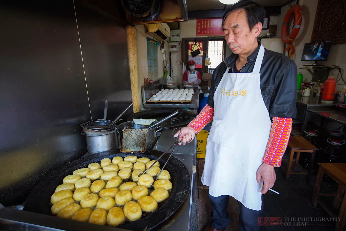 走近了解后得知,原来这么多人都在等着买一种东西,就是油墩。他们有当地居民,也有外来的游客。出于好奇,我也挤了上去,看看里面到底是什么一个情况。