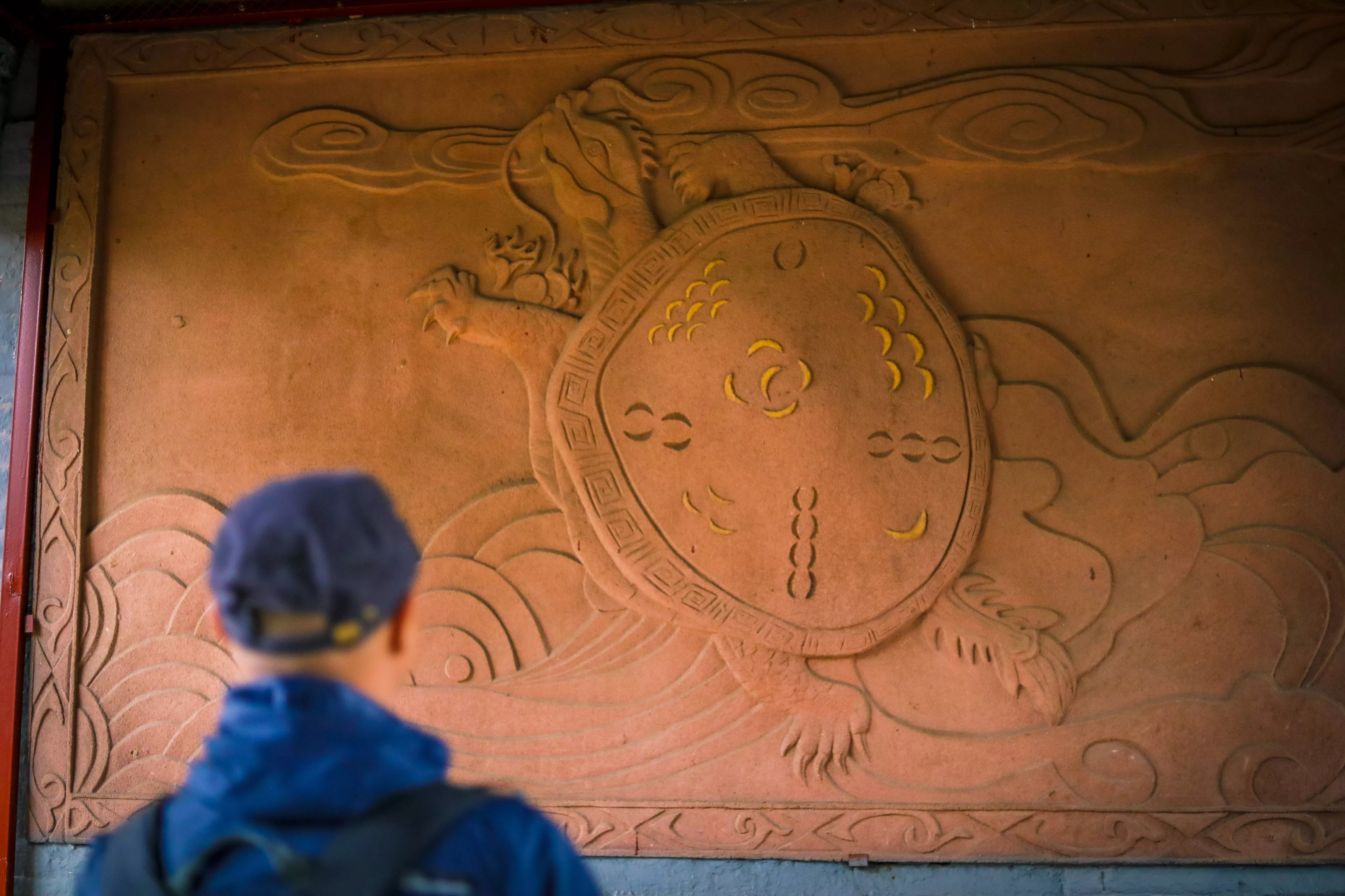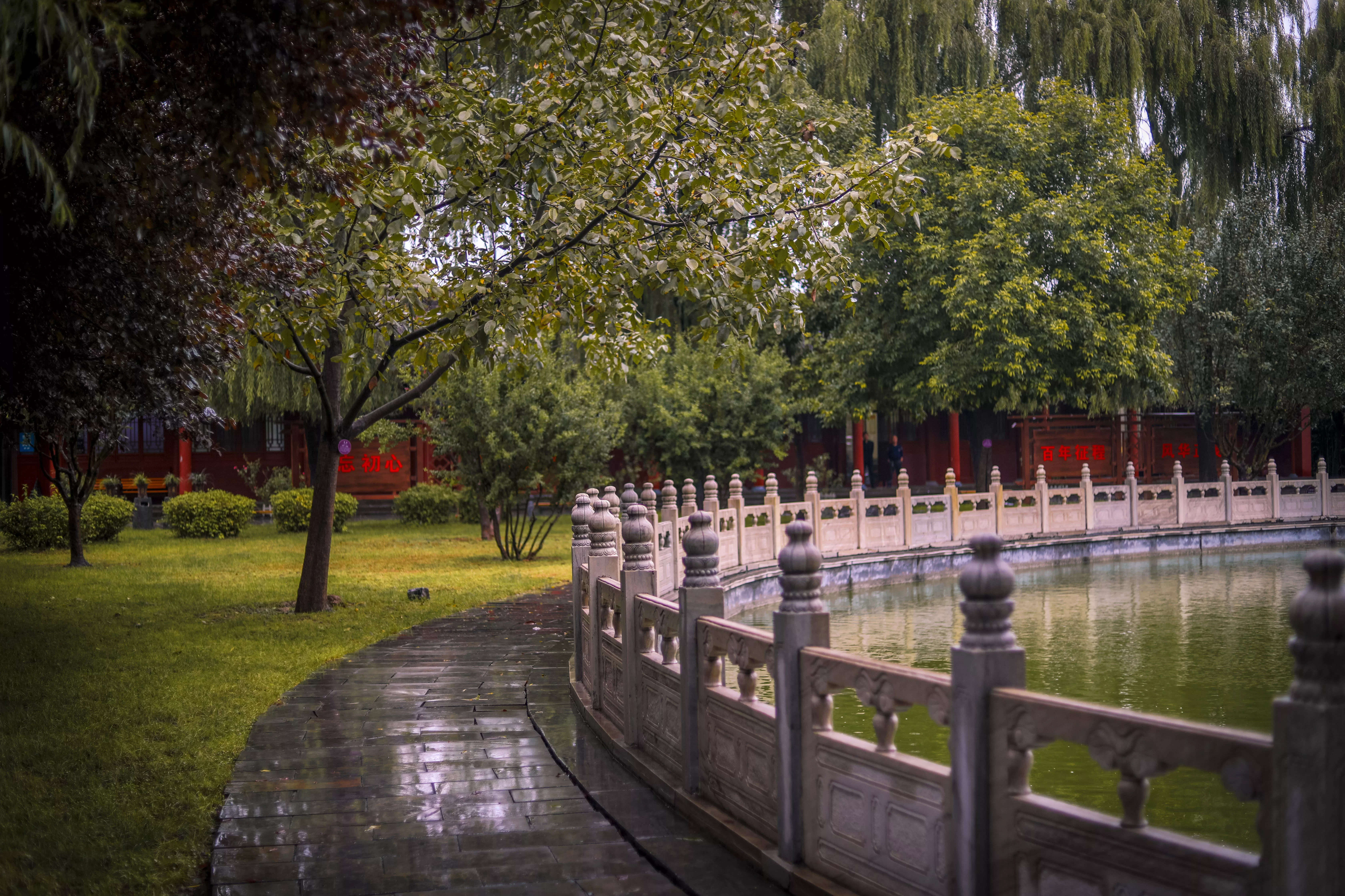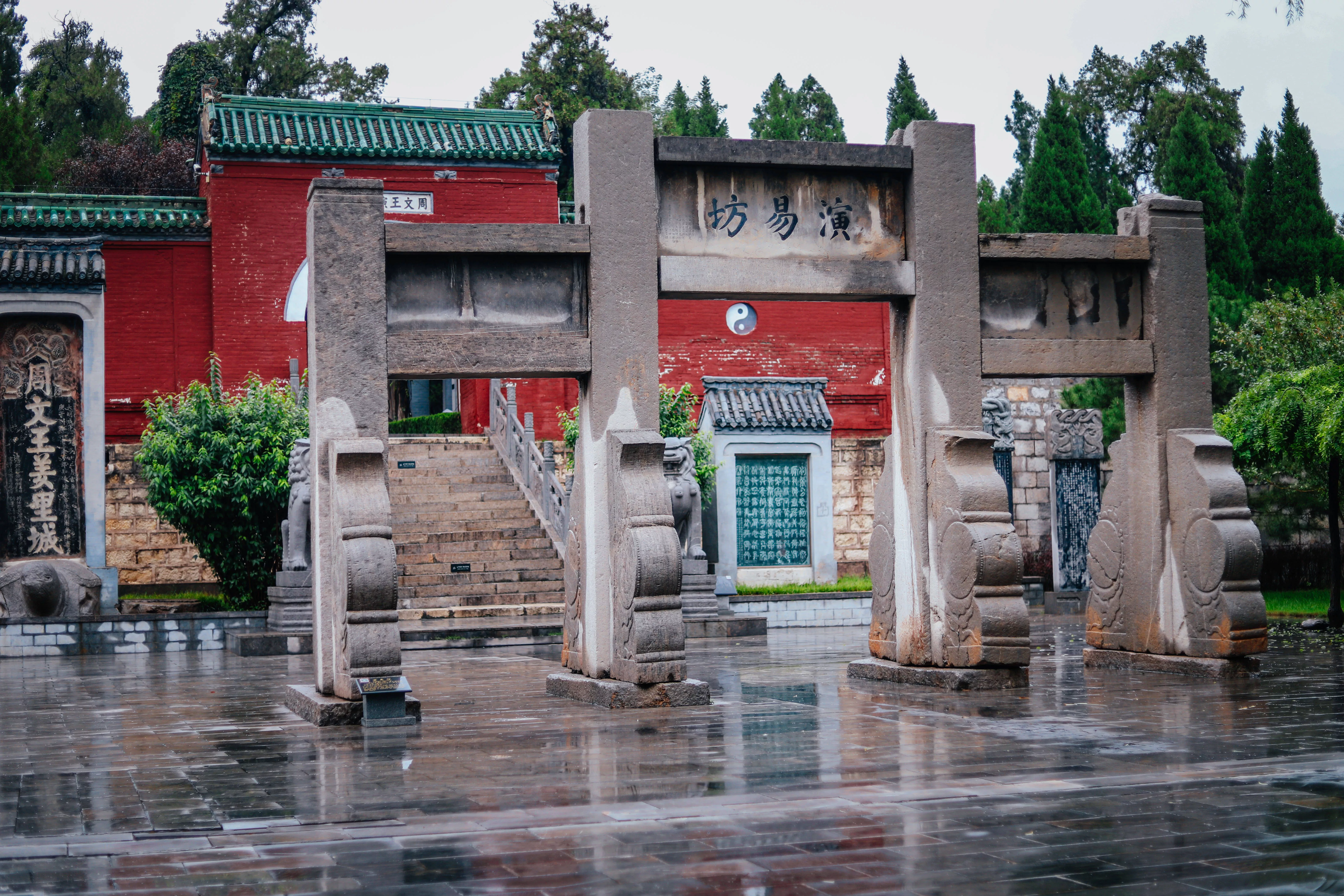 两边的池塘也是很有讲究爹,“因日出东方为阳”,所以在右侧养的是红色的鲤鱼,而对面“日落西方为阴”养的都是黑色的鲤鱼,穿过演易台才真的进入了景区内。
