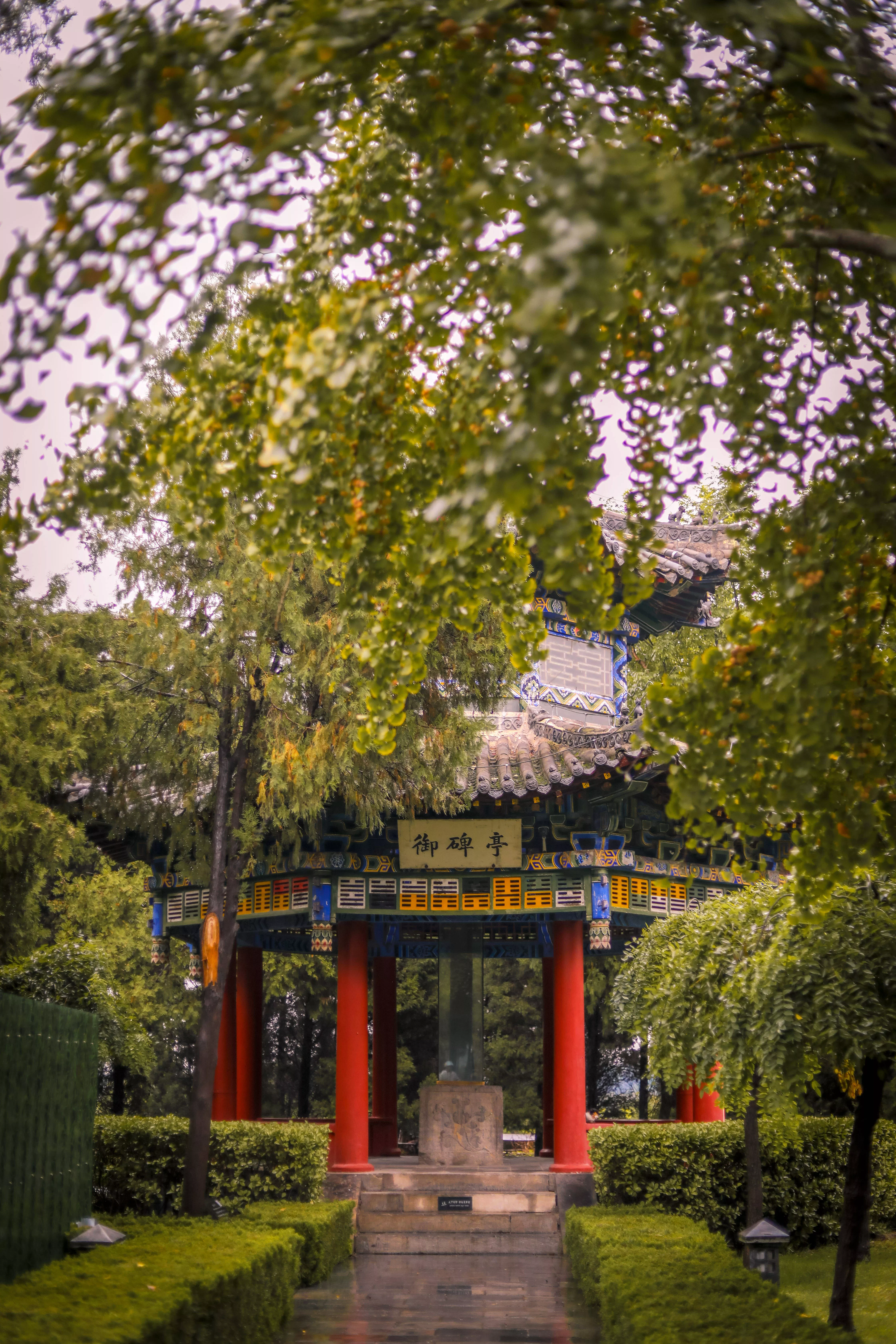 当年乾隆帝经过这里,对周文王作出赞扬而特意刻的一块石碑,在羑里城中的碑亭很多,另一侧的文王易碑内就雕刻着很多卦象。