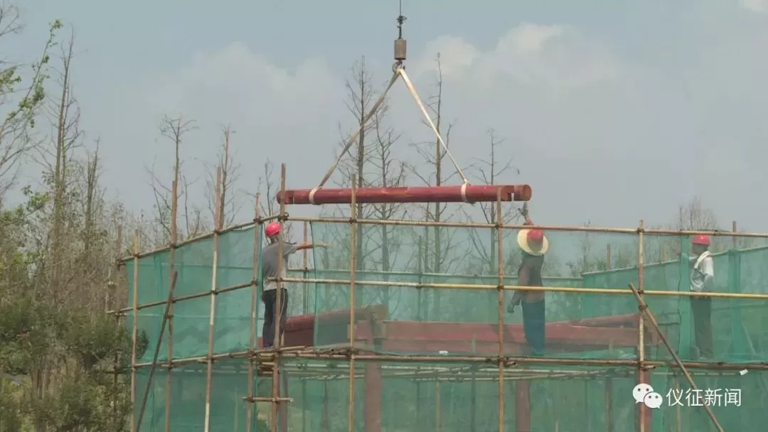 近日,在G328国道与天宁大道交叉口节点提升改造工程现场,记者看到工人们正在吊装圆木,架设凉亭。整个工程以简洁、规整、大尺度模块绿化为主,在有限的空间里提升“绿色”含量,合理提升绿化的档次、层次,营造出令人赏心悦目的视觉效果。