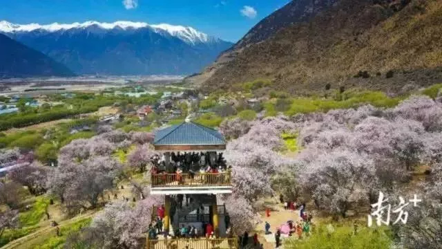 广东省第九批援藏工作队2019年6月进藏以来,广州、深圳、佛山的地铁都开出了“西藏桃花”专列……林芝“桃花源”成为广东人心中的“诗与远方”。2021年,广东游客量升至来林芝旅游的全国各地游客中的第一位。“桃花源”的春风吹向南粤大地,雪域高原也迎来了生态旅游的生机与活力。