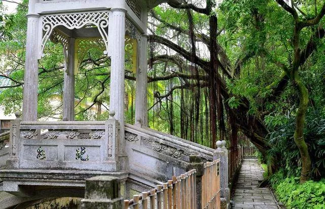 4.宝墨园,广州番禺宝墨园位于广东省广州市番禺区沙湾镇紫坭村,建于清朝末年,占地五亩,因破四旧,文物毁于二十世纪五十年代。于1995年重建,历时八载,宝墨园经过四期建设,园面积扩至168亩(约10万平方米),集清官文化、岭南园林艺术、岭南古建筑、珠三角水乡特色于一体,是国家AAAA级旅游景区。宝墨园内的建筑及景观主要有:治本堂、宝墨堂、清心亭、仰廉桥、紫洞舫、龙图馆、千象回廊和风味食街等。园内种植的植物主要有千年罗汉老松、九里香、两面针树、银杏树、玉堂春、大叶榕树、紫薇树等,还栽植有大量的岭南盆景。宝墨园更是一座颇具特色的园艺精品公园,除了树木花卉和建筑之外,园内周边还有龟池、放生池、锦鲤池、莲池。