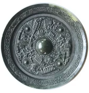 桑国民修复的越国文化博物馆重要巨额藏品之一——东汉重列式神人车马画像镜。