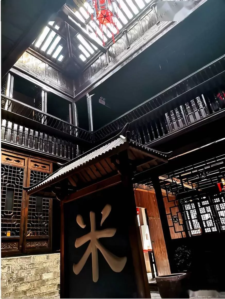 一栋二层木楼,三十二个房间的暗物质,以不同的米、布、盐以及黑、白、灰的色调,为我释放着米店曾经的生意语汇。我把更多的情感移植生活区域,自行分开小农与商家的不同。二进为走马转心楼,这是外公外婆家没有的。后三进都是平房,但三进是敞厅,用于接待来客,四进是香屋,用于祭祀祖先,五进是居住宿舍,建筑面积700平方米。走在另一种模式的旧时光里,刘同兴隆庄当铺中堂内部的隔扇门。格心为“井”字棂花图案;裙板装饰以圆“寿”雕刻,四蝙蝠环绕其外;绦环板上施以浮雕花卉图案,打破了整板和大面积面板的沉闷,显示出玲珑活泼的趣味;槛窗格心有冰裂纹样和井字纹样。读着米文化泛起的历史微澜,不得不赞叹,这三河的建筑布局与富足的空间所呈现的水文化的生活格局来。