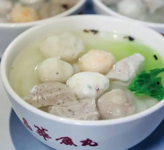 是做鱼丸时所用的汤水,汤口清淡鲜美,没有添加味精,所以这一口汤也是汇聚着鲜鱼的精华,这一碗原汤清爽落胃,吃完暖身暖胃。