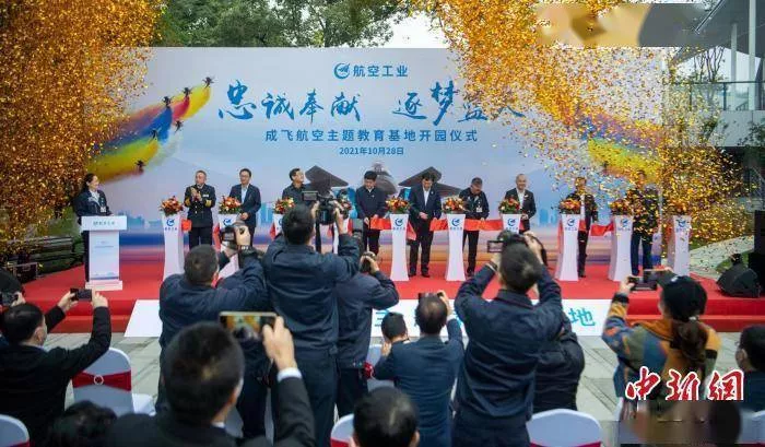 嘉宾们共同为园林式战斗机博物馆——成飞航空主题教育基地开园剪彩。 刘忠俊 摄