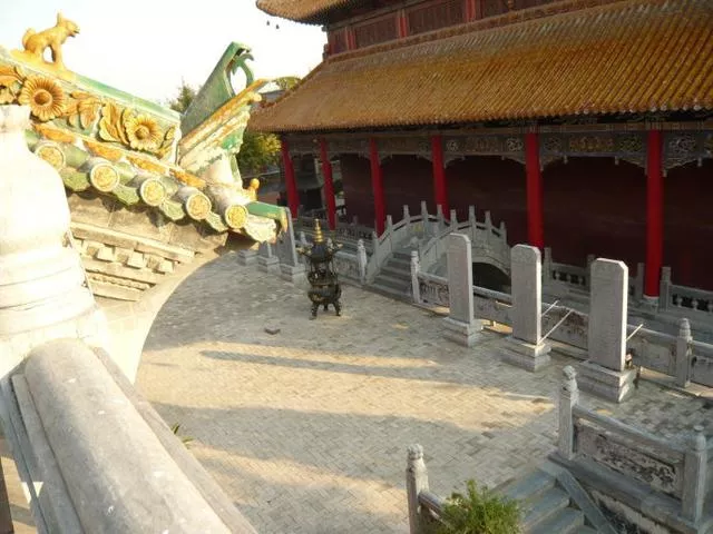 此外,祖师殿左右各有一个跨院,东跨院叫"洞阳观",是二进六殿式跨院,前三殿为救苦殿、包公殿、财神殿;后三殿为上、中、下八仙殿。西跨院为"碧霞庄",也是二进六殿结构,供奉的都是女神,前宫为圣母殿、奶奶殿、贞烈祠;后宫为王母宫、老姆殿、三宵殿。