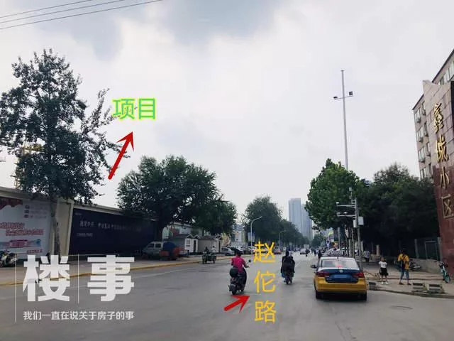 在赵佗路上,可以看到项目施工的大门、围挡、以及正在建设中的售楼处。