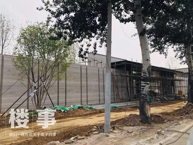 目前售楼处大门正在不断完善中,施工支架可见。