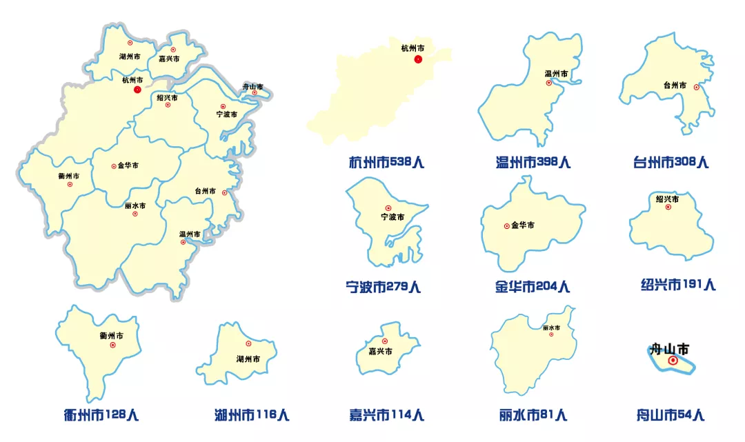 今年学院在浙江省内共招收2411位新生,经过统计发现,来自浙江省杭州市的新生是最多的,共538人;温州市和台州市紧随其后,分别是398人和308人。