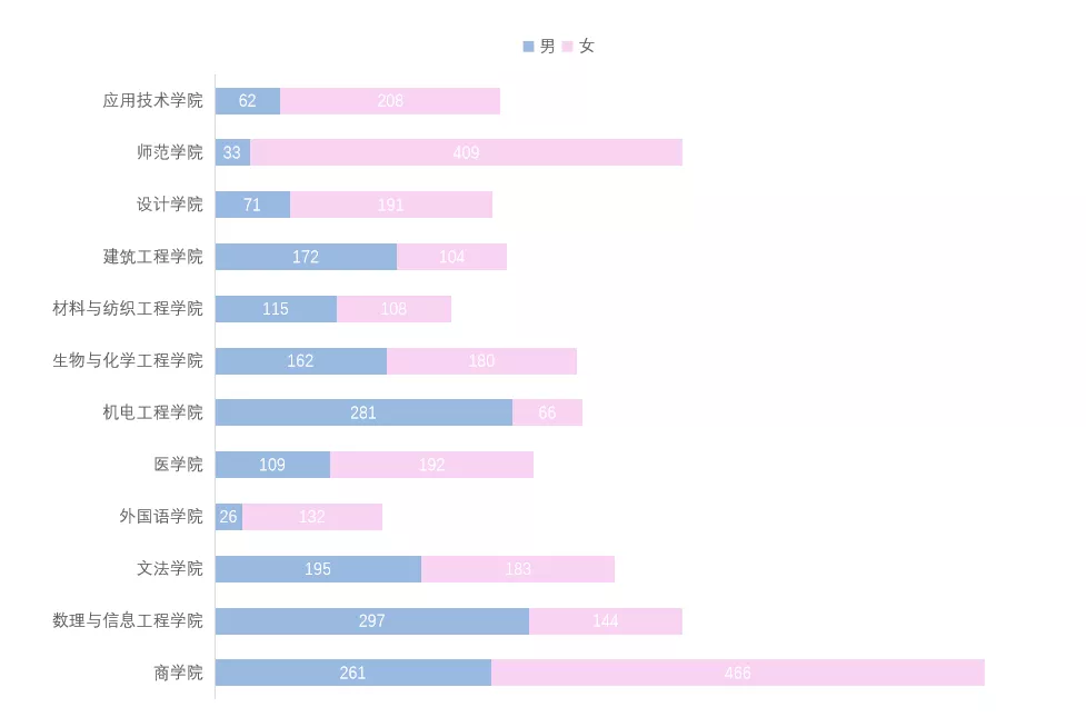 最受瞩目的数据来啦!今年学院的总男女比为2:1,男孩子们要加油噢