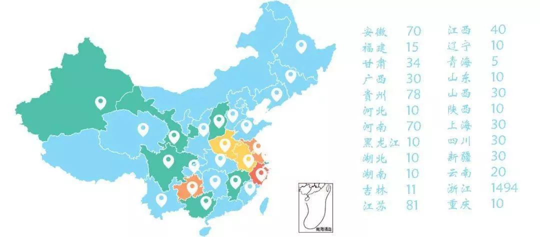 本年度在30个省(市、区)招生,浙江省毫无疑问地占据了榜首,共有2388位新生,占比59%。排名第二的是贵州省,共有150位新生。