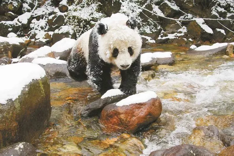 雪中的大熊猫 图/国家林业和草原局政府网 摄影/胡万新