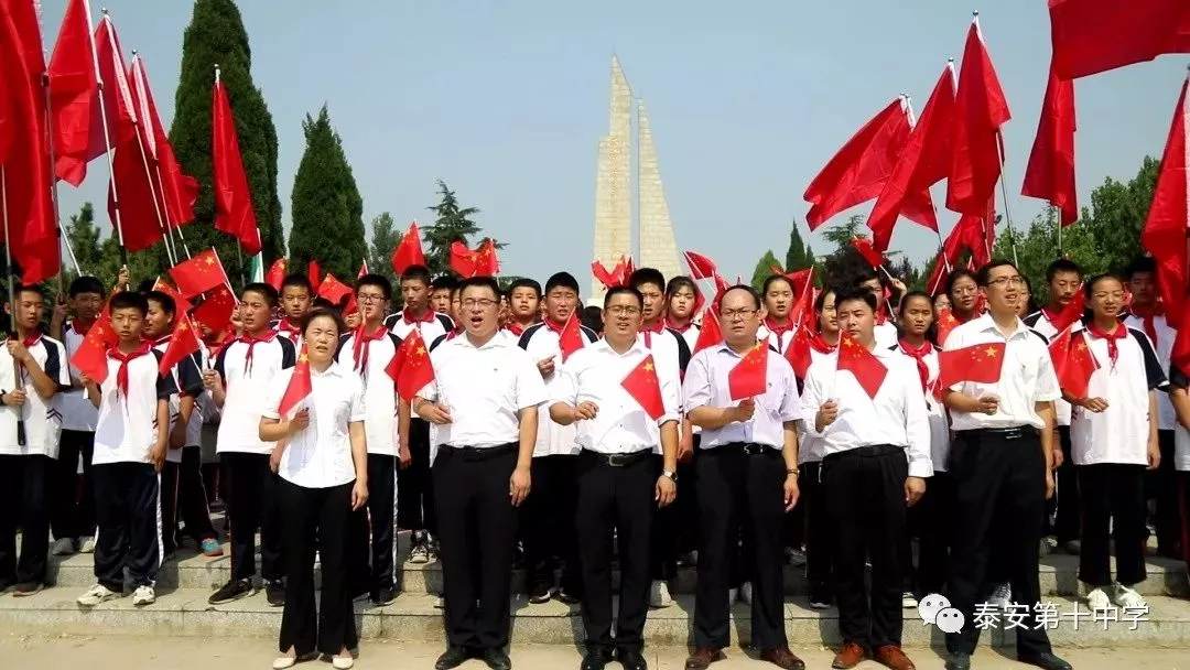 泰安十中组织学生和党员教师到泰西武装起义纪念碑前,举行烈士纪念日祭奠活动。
