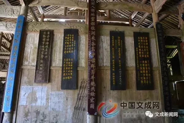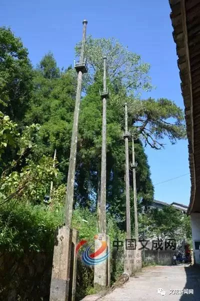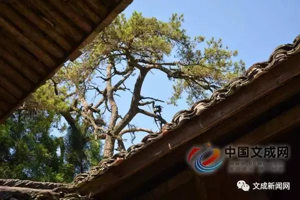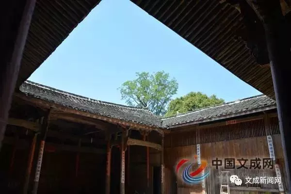 站在院中,透过天井能看到祠堂外高耸的古松。据林加德老人介绍,古松与祠堂年龄相仿,约有200来年的树龄。仰看古松,大树在蓝天的映衬下愈显肃穆,它与祠常中的匾额、楹联,与门前的一排旗杆石,均见证着宗族曾经的荣耀。该宗祠现为县级文物保护单位。