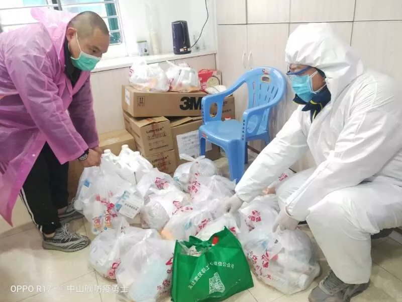 杨康通宵值守后为大家采买物资(左一:杨康)
