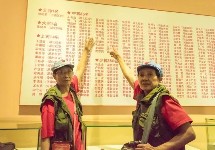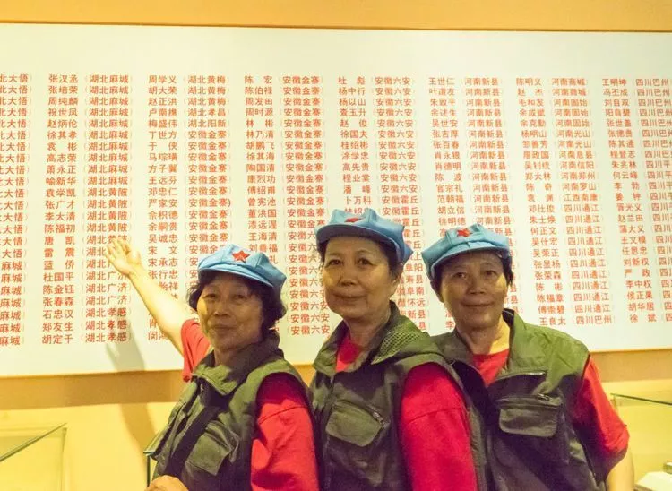 在各个纪念馆,我们的好几个队员都在纪念墙上找到了自己父亲的名字或照片。在将帅碑林,为所有红四方面军的老战士都立了石碑,铭刻着他们的画像和简历,还在几千块石碑上铭刻着13万8千名红四方面军烈士的名字。