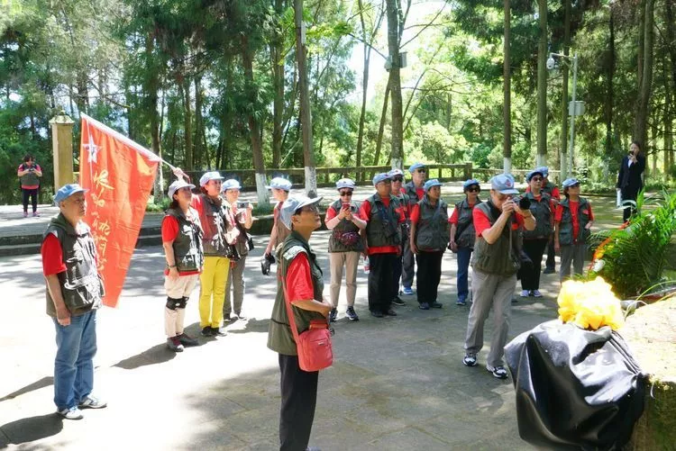 捐赠书画仪式前,红色书画万里行团队一行30余人在讲解员的带领下在烈士纪念碑前举行了敬献花篮仪式,重温了入党誓词,并参观烈士纪念馆。