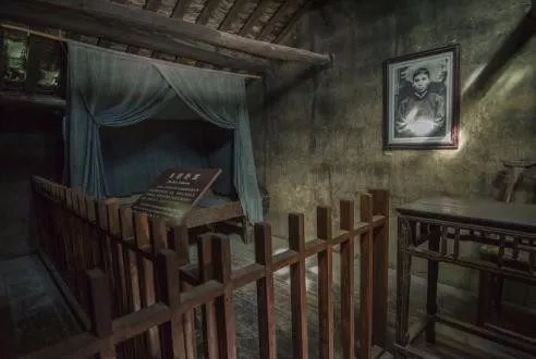 堂屋西侧第一间是朱德祖父母的卧室,楼上是朱德的卧室兼书房。厨房外隔壁是朱德养父母的卧室。堂屋东侧分别住着朱德三叔、四叔一家,那时挤在这座房子居住的共有14口人。图为朱德的卧室兼书房