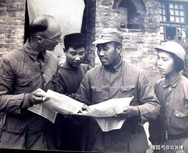 ▲毛泽东、朱德、周恩来等人在延安