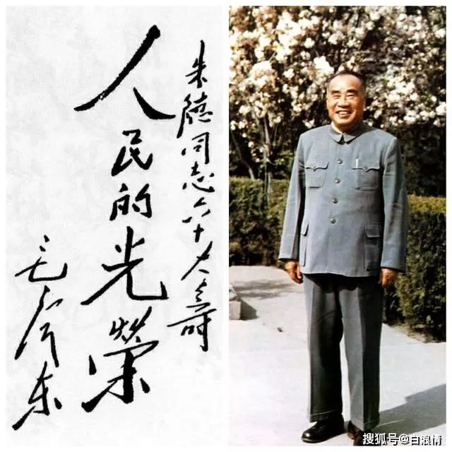 毛泽东为朱德六十岁生日亲笔题词“人民的光荣”