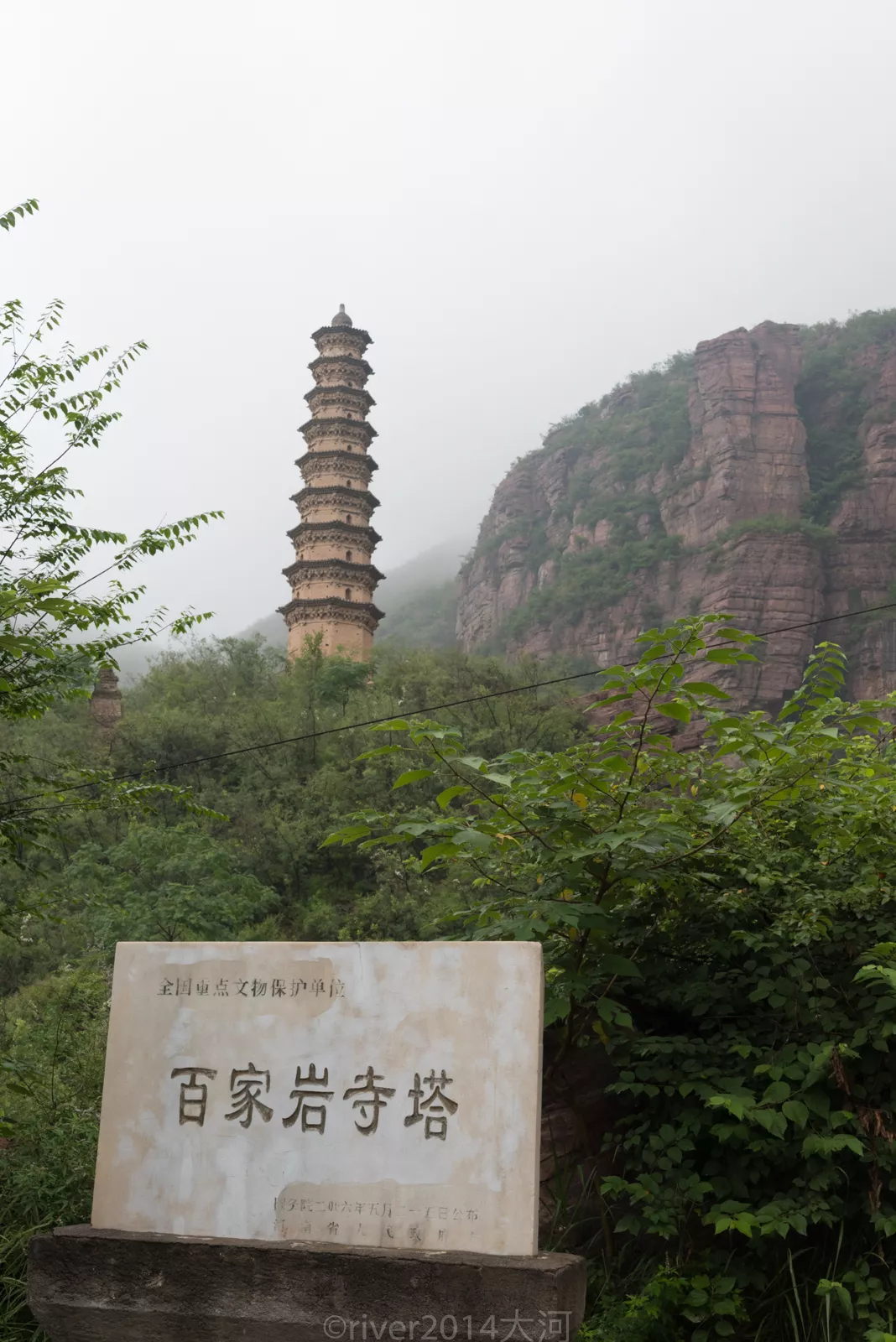 不过进入百家岩景区,最先看到的实际上一座古塔。这座塔叫做孝女塔,始建于唐代,纪念为救其母而在此跳崖的唐代孝女,这座塔在辽金时期重建。