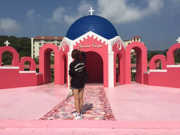 浪漫的粉色教堂,搭配台湾的蓝天白云,随手大片有木有?!听导游介绍,这个教堂现在已经成了很多新人的必拍地呢!